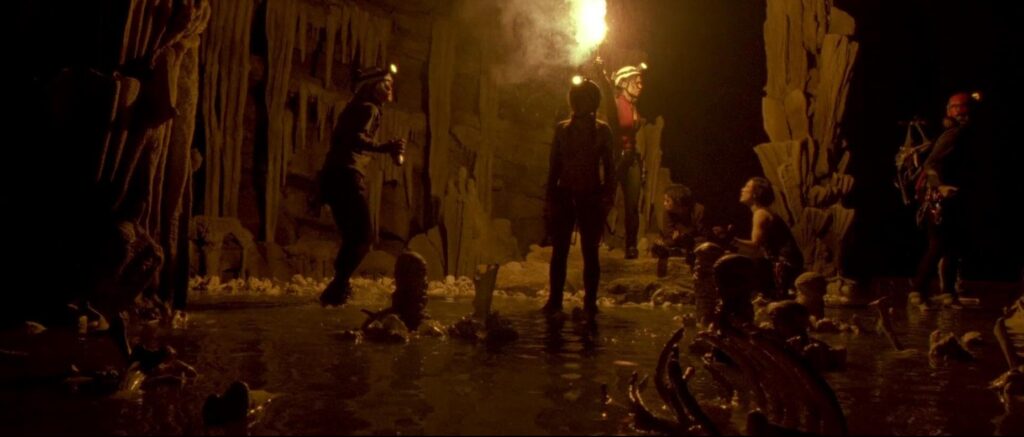 One of The Descent’s biggest strengths is its ability to make the viewer feel trapped alongside the characters. The tight tunnels, sudden drops, low ceilings, and pitch darkness (broken only by headlamps or torchlight) create an overwhelming sense of confinement. Even when nothing is happening, the danger feels imminent.